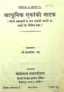 आधुनिक एकांकी नाटक -1 अतिरिक्त अंक समीक्षा पढ़िए बुक सूची देखें संपादक : उदय शंकर भट्ट संस्करण संख्या : 002 प्रकाशक : हिन्दी संस्कृत पुस्तक विकेदा, लाहौर प्रकाशन वर्ष : 1940 भाषा : हिंदी पृष्ठ : 197 सहयोगी : सरदार शहर पब्लिक लाइब्रेरी