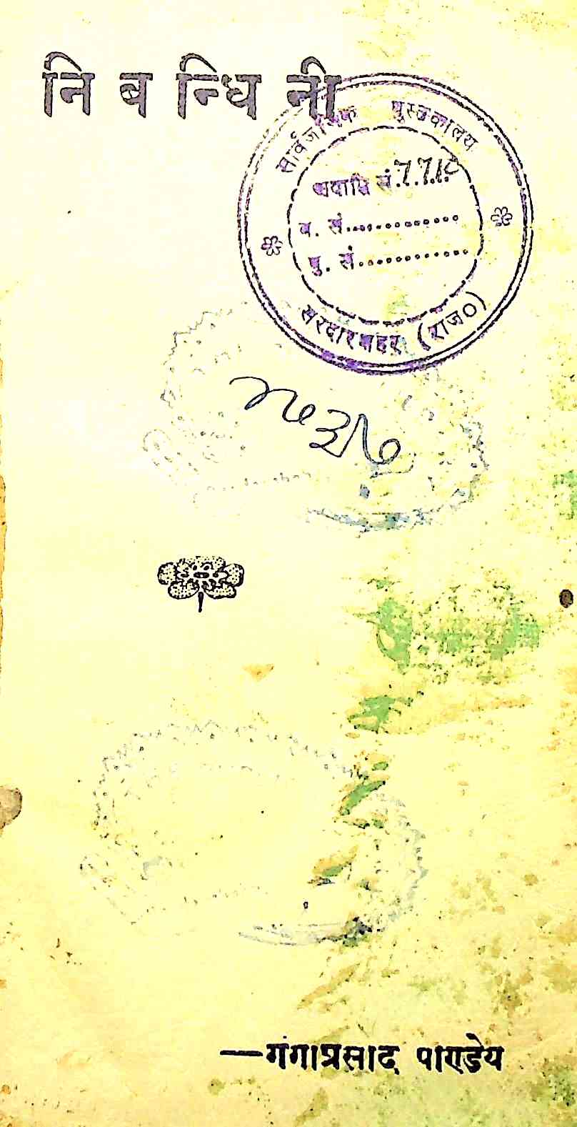 by गंगा प्रसाद पाण्डेय निबन्धिनी by गंगा प्रसाद पाण्डेय -1 अतिरिक्त अंक समीक्षा पढ़िए बुक सूची देखें लेखक : गंगा प्रसाद पाण्डेय संस्करण संख्या : 003 प्रकाशक : छात्र हितकारी पुस्तकमाला, प्रयाग मूल : प्रयागराज प्रकाशन वर्ष : 1945 भाषा : हिंदी पृष्ठ : 160 सहयोगी : सरदार शहर पब्लिक लाइब्रेरी